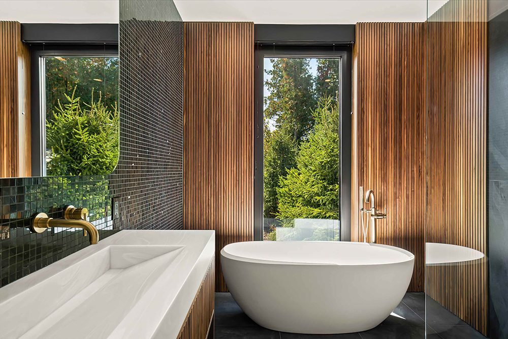 Алюмінієві вікна Masterline 8Hi та розсувні двері MasterPatio, виготовлені з бельгійської алюмінієвої профільної системи Reynaers, ідеально відповідають характеру дерев’яного будинку. Інноваційний дизайн вікон 8Hi забезпечує ефективну ізоляцію, а розсувні двері MasterPatio поєднують функціональність з елегантністю. Це гармонійне поєднання бельгійської точності та тепла натурального дерева, що створює довговічне та стильне скління для вашого будинку.